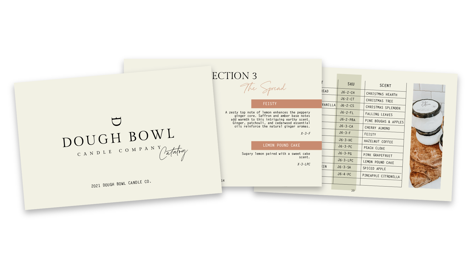 DBCCo. is as simple as it’s name - a candle company with an emphasis on dough bowls. This simplicity and imagery is reflected in the final collateral.